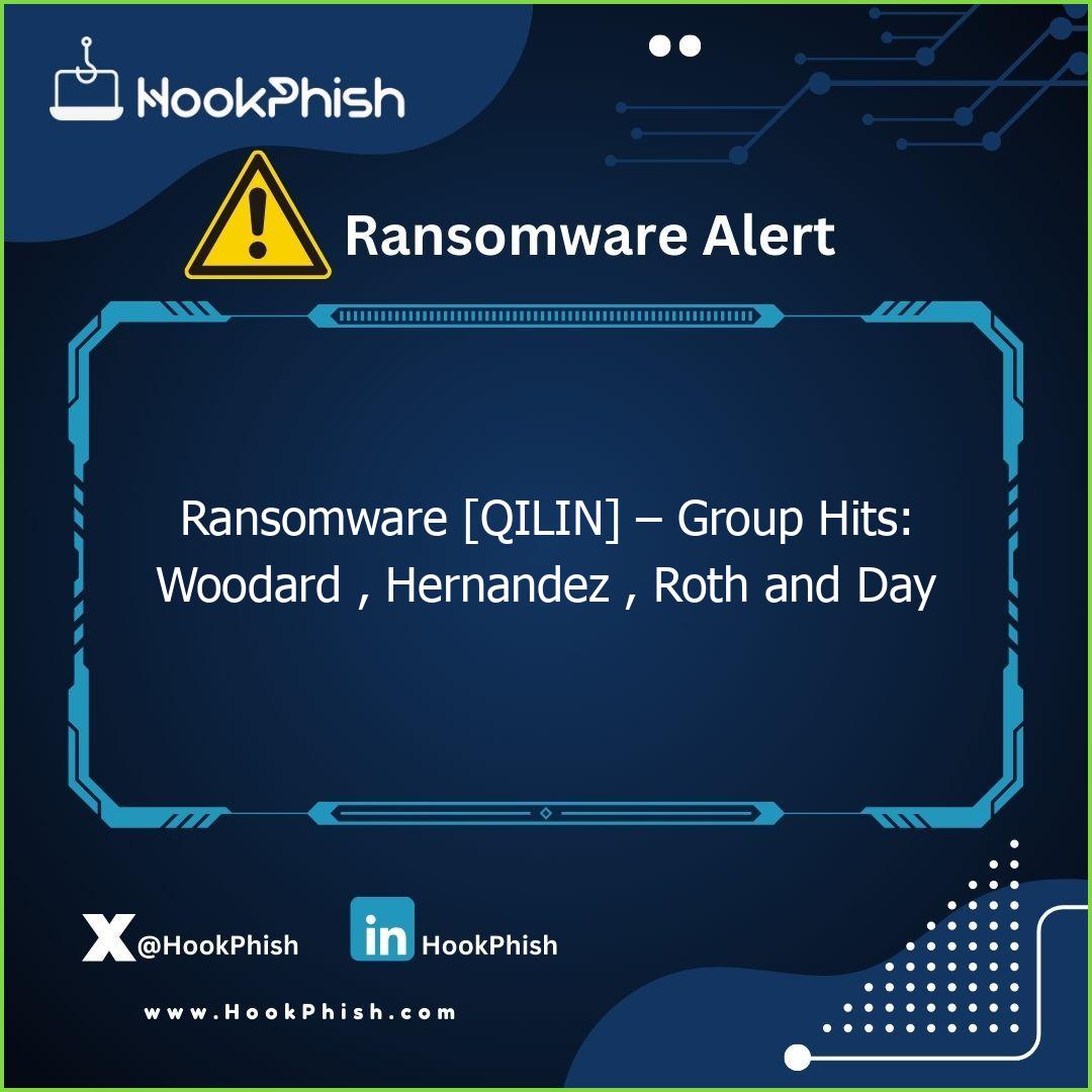 The Infamous Ransomware [QILIN] – Group Hits: Woodard , Hernandez , Roth and Day in a recent cyber attack, raising concerns about cybersecurity vulnerabilities. To stay ahead of emerging threats, fortify your online security with the HookPhish Dark Web Monitoring platform. Explore HookPhish Dark Web Monitoring.